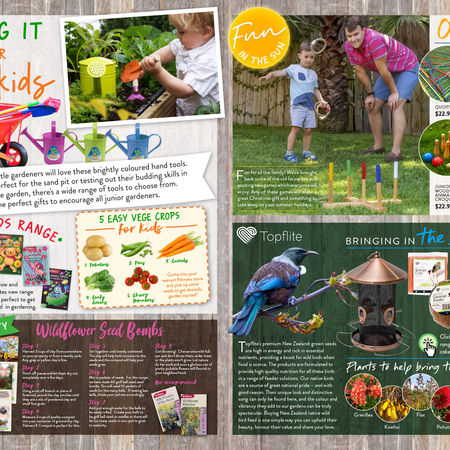 Work done for this catalogue included image editing and photography, particularly the front cover, which involved combining supplied product images with a stock image of a garden.